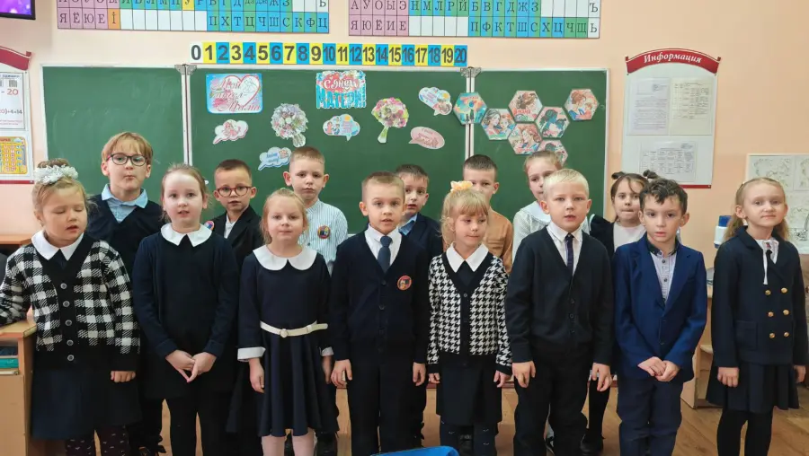 Юные ученики с огромной радостью и любовью поздравили своих мам с одним из самых добрых праздников — Днем матери. Ребята очень старались сделать этот день незабываемым. Они искренне желали своим мамочкам всего самого хорошего, трогательно читали стихи и душевно исполняли песни. Каждый ребенок вложил частичку своей души в поздравление. Особой гордостью стали подарки, которые дети сделали своими руками.