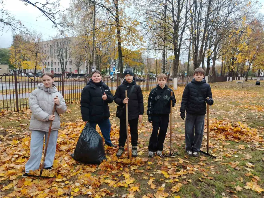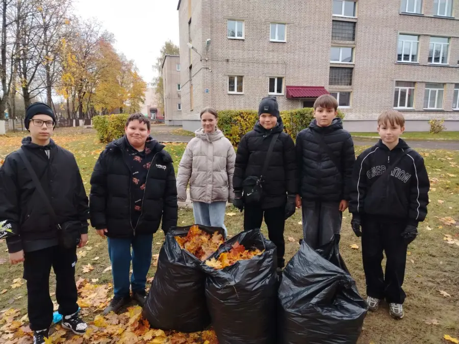 Ребята с энтузиазмом вышли на уборку территории, чтобы навести порядок и внести свой вклад в благоустройство окружающей среды.