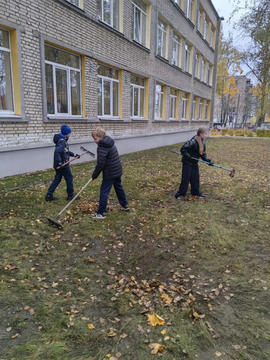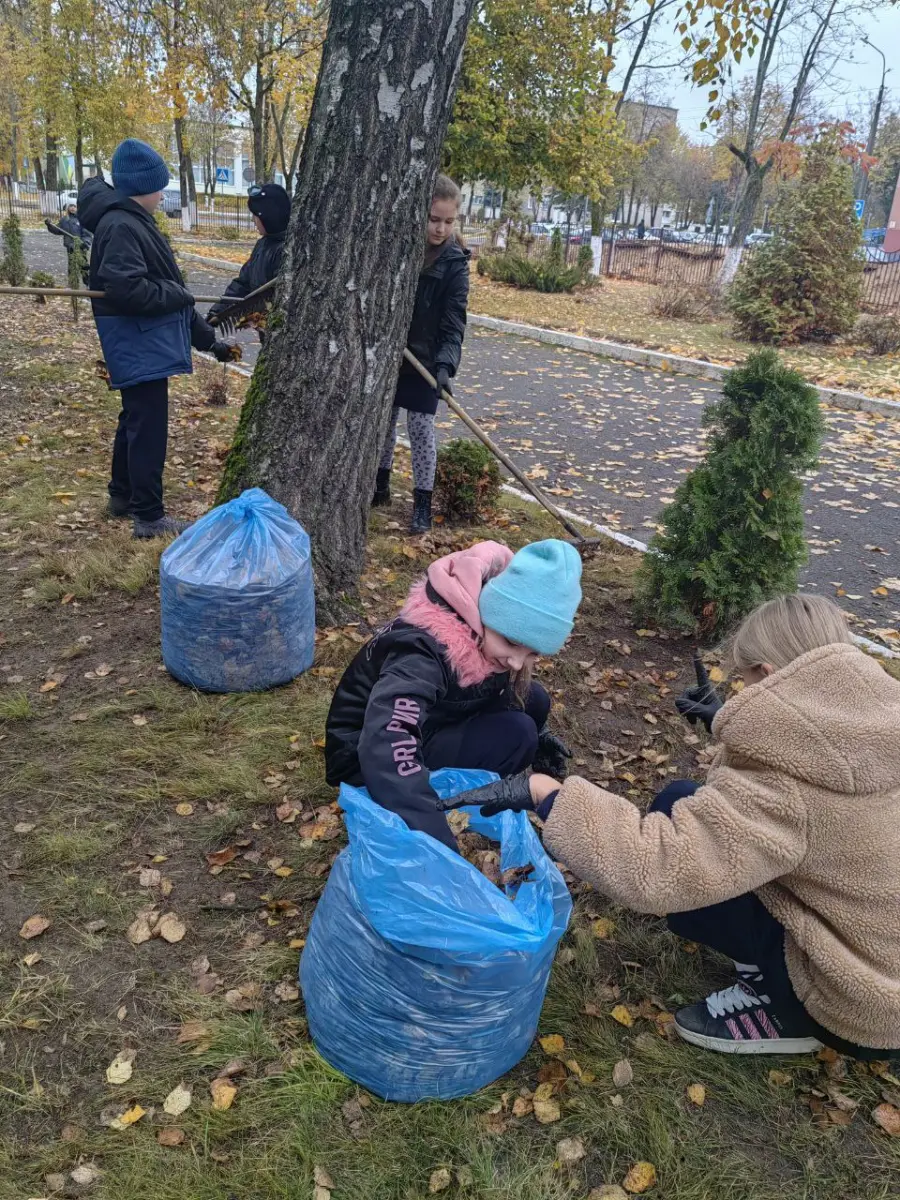 Учащиеся убрали мусор и опавшую листву, очистили клумбы и дорожки.