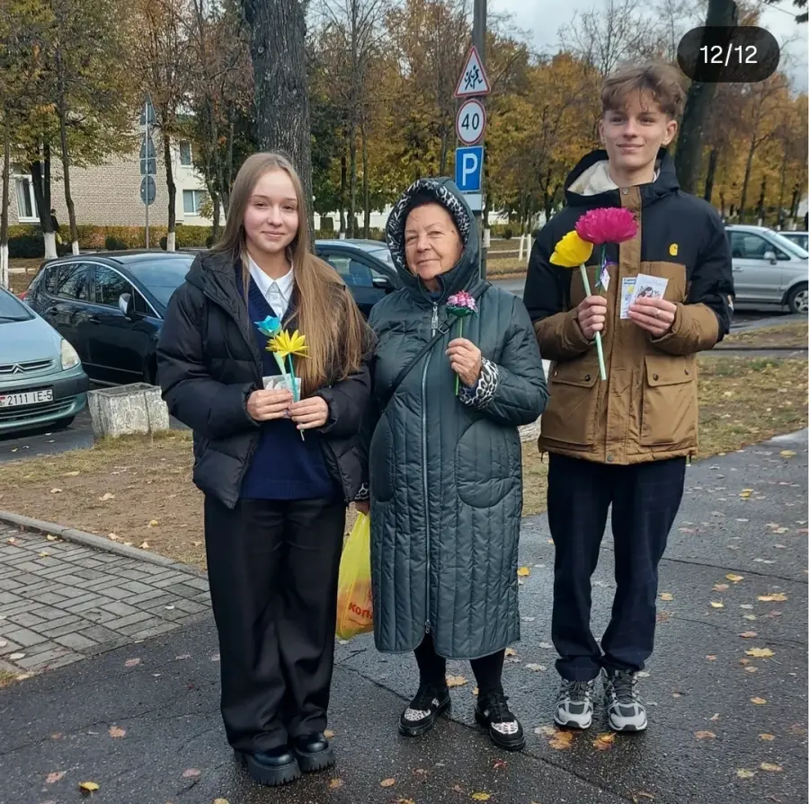 14 октября, в сам праздник, члены ОО "БРСМ" вышли в микрорайон школы, чтобы устроить для мам настоящий день доброты!