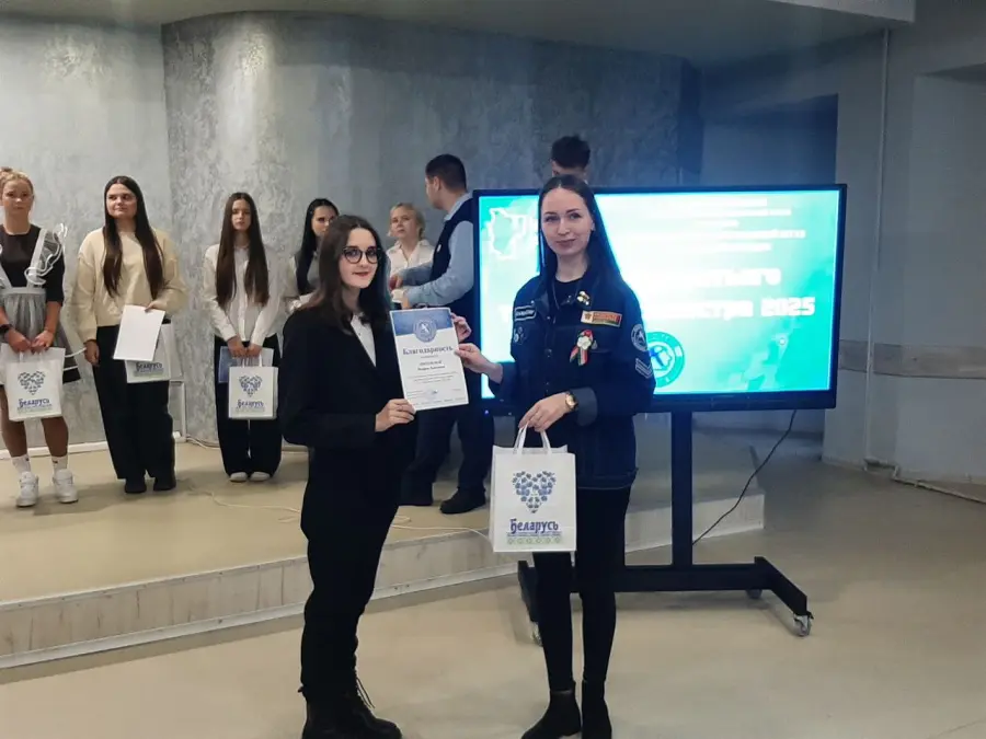 По результатам трудового семестра Пирумова Валерия была отмечена как лучший участник студотрядовского движения и награждена грамотой ОО БРСМ. В конце занятия ребята определили главные качества современного человека труда и создали коллаж.