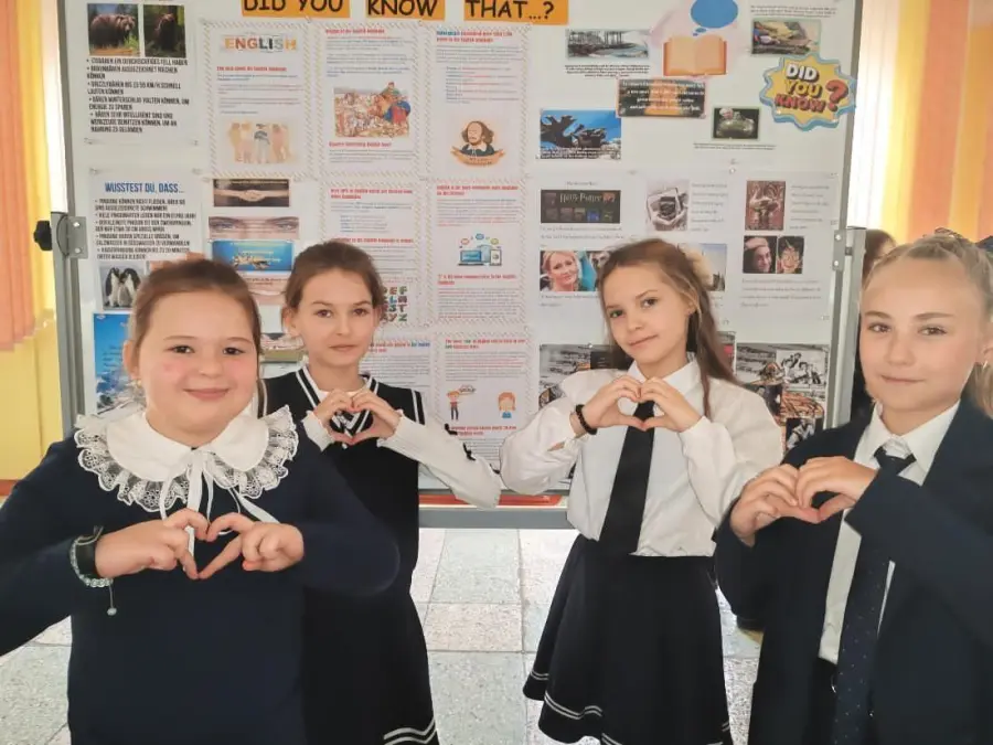 Первым шагом стало оформление тематического стенда "Do you know that?", который сразу привлёк внимание учащихся. На нём размещены интересные и необычные факты из разных сфер жизни — от культуры и науки до спорта и традиций. Это не просто информация, а настоящий повод задуматься, удивиться и узнать больше о мире вокруг нас. Также прошла акция "The motto of the day", в рамках которой каждый день будет начинаться с вдохновляющей фразы на английском и немецком языках. Эти девизы помогают настроиться на позитив, мотивируют к изучению языков и создают атмосферу единства и любознательности.