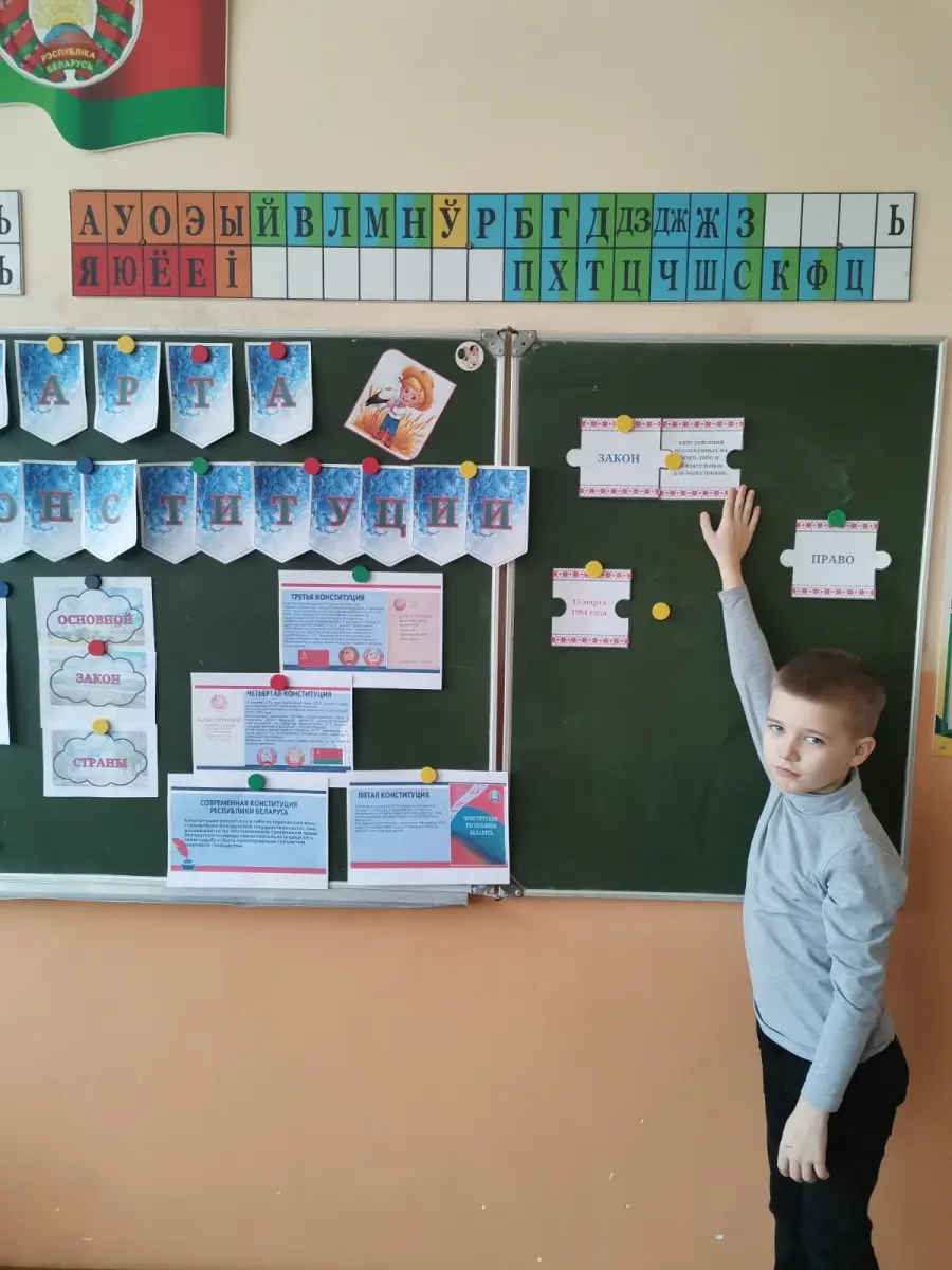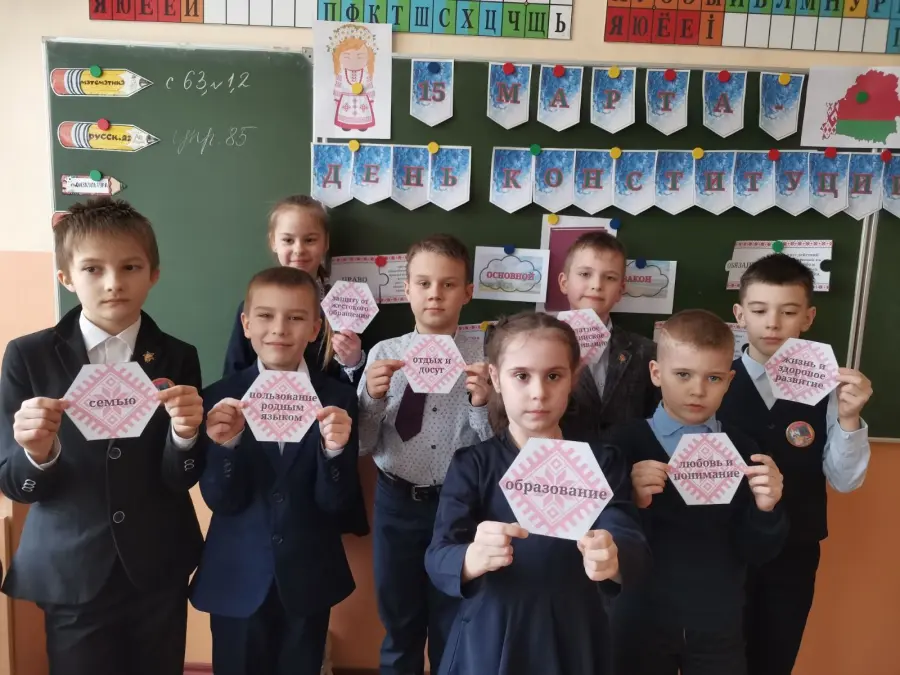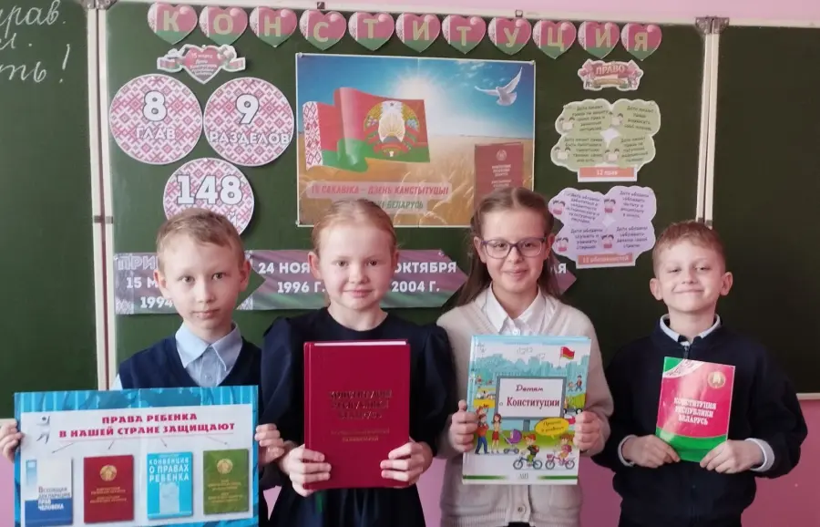 На уроке ребята делились своими мыслями, рассуждали, обменивались мнениями о том, что значит быть гражданином Республики Беларусь, как взаимосвязаны права и обязанности граждан нашей страны, какие ценности современного белорусского общества закреплены в Основном законе нашего государства. Классные руководители организовали с детьми разнообразные формы работы на этом уроке: интерактивные игры, викторины, разгадывание кроссвордов, филвордов, просмотр видеороликов и презентаций, изучение отдельных глав печатного издания Конституции Республики Беларусь, конкурс лэпбуков и творческих работ учащихся. Урок получился познавательным и запоминающимся. Школьники убедились в важности изучения законов своей страны, а также необходимости их соблюдения.
