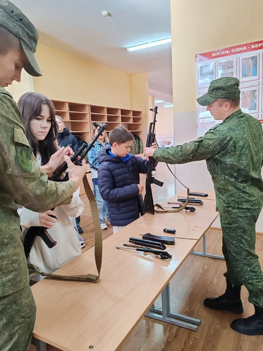 Одним из самых запоминающихся моментов стало практическое занятие по сборке и разборке учебного автомата. Под руководством инструкторов школьники попробовали себя в роли настоящих солдат — аккуратно и внимательно выполняли все действия, учась дисциплине и точности.