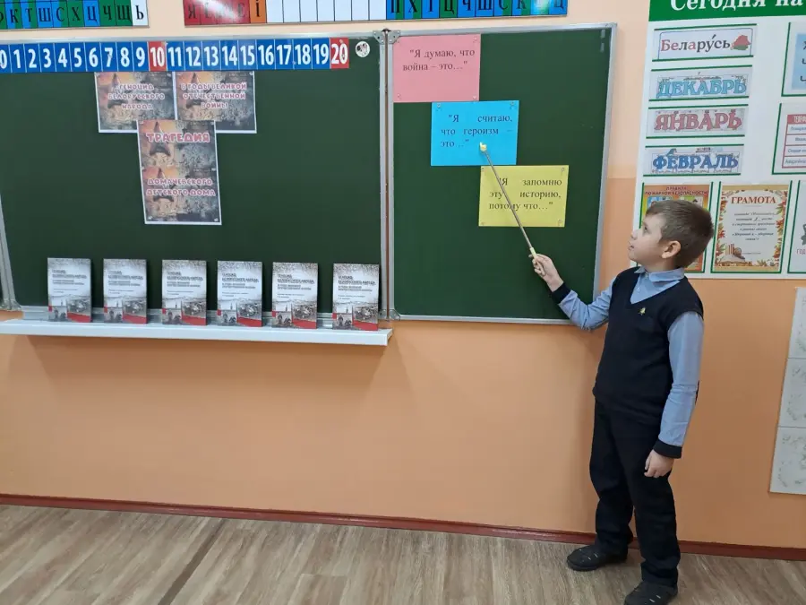 Целью мероприятия было знакомство учащихся с трагическим событиями, произошедшими в одном из белорусских детских домов в годы войны. Беседа была организована в доступной для младших школьников форме. Рассказ о судьбе детей-сирот был кратким и содержательным. Ребята рассматривали фотографии и обсуждали информацию, размещенную на страницах учебного пособия. Судьба ни в чем не повинных детей и их воспитательницы растрогала детей до глубины души. Ребята эмоционально обсуждали прочитанное и делились своими переживаниями. Подводя итог, второклассники высказались о том, что такое война, в чем проявляется героизм, почему люди не должны забывать о страшных событиях, которые пришлось пережить белорусскому народу. Такие беседы воспитывают в подрастающем поколении чувство сострадания, уважения к памяти погибших и осознание ценности мира и детства.