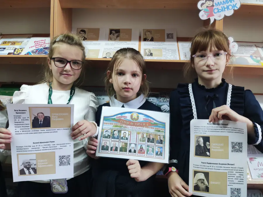 Званием «Герой Беларуси» на данный момент награждено 14 граждан нашей страны. Они получили ее за выдающиеся достижения, за героизм и подвиг во имя спасения других. Обучающиеся дали определение понятию «герой», рассказали о наших героях, их подвигах и заслугах перед государством и обществом. В ходе диалога пришли к единому мнению, что именно такие люди являются достойным примером для нашей молодёжи.