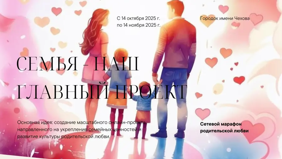 С 13 октября по 10 ноября 2025 года в цифровом пространстве блога "Городок имени Чехова" развернулась тёплая, душевная история – интерактивный сетевой марафон родительской любви "Семья – наш главный проект".