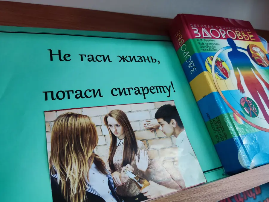 В рамках профилактики вредных зависимостей в школьной библиотеке организована книжная выставка-совет "SOS-скорее оставь сигарету".