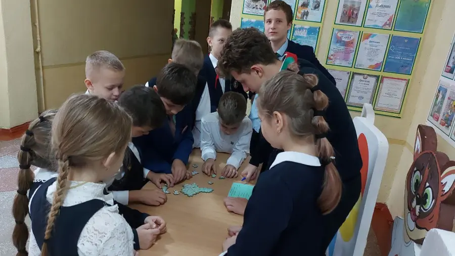 Цель: обобщить знания учащихся о родном городе и расширить кругозор. Всего было 5 станций: "Собери пазл","Достопримечательности Беларуси", "Пословицы и поговорки", " Знаешь ли ты свой город?", "Спилс - карта Минской области". Учащиеся двигались от станции к станции выполняя различные задания. Отвечали на вопросы викторины,отгадывали пословицы и поговорки , собирали пазл.