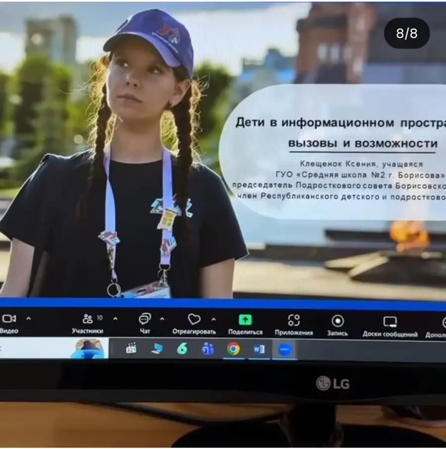 🤝🏻Клещенок Ксения представила доклад «Дети в информационном пространстве: вызовы и возможности» и презентовала проект члена Республиканского детского и подросткового совета Андрея Журавлёва «Компьютерная игра в жанре визуальной новеллы «Скрытая угроза».