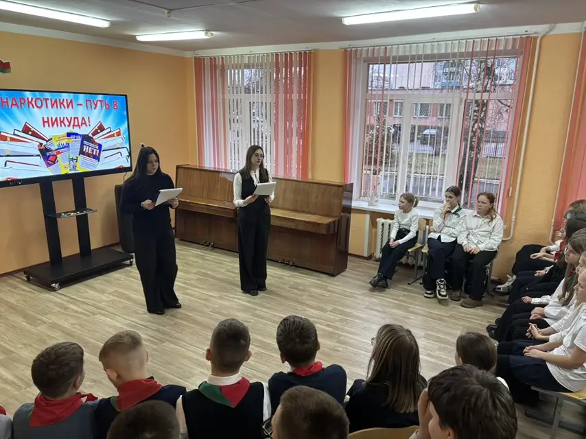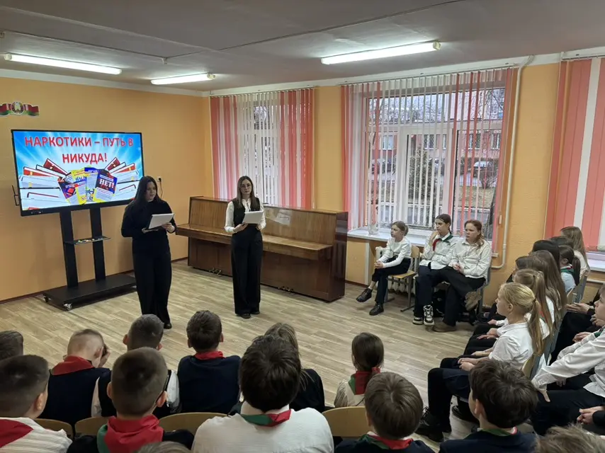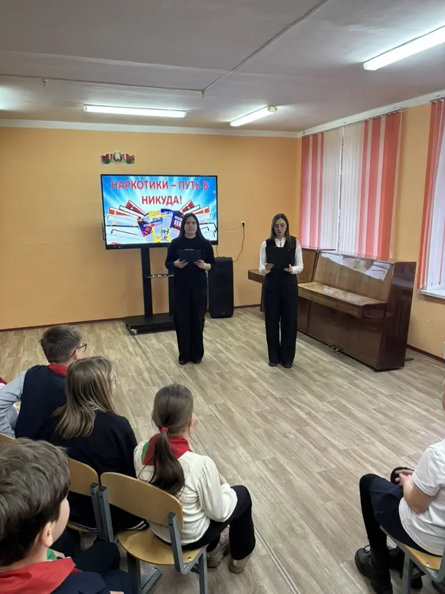 Цель- информировать учащихся о всевозможных последствиях употребления наркотиков и других ПАВ. Во время мероприятия педагоги - организаторы напомнили учащимся о вреде наркотиков, с какого возраста наступает уголовная ответственность за незаконный оборот наркотических средств, психотропных веществ и их аналогов. В конце мероприятия учащиеся посмотрели видеоролики о вреде наркотиков и получили буклеты.