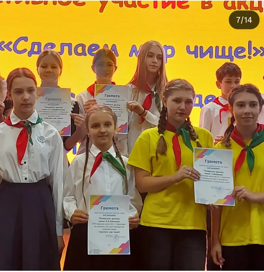 🏆 Грамота за активное участие в пионерской трудовой акции «Сделаем мир чище». Это признание нашего вклада в благоустройство и заботу о окружающей среде.