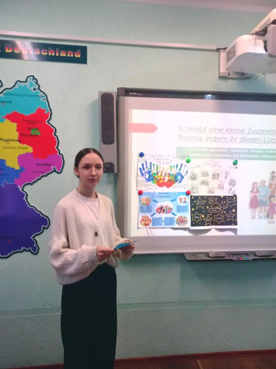 Не совсем обычный урок немецкого языка ожидал сегодня ребят из 9-х классов, ведь им предстояло защитить проекты по теме "Взаимоотношения в семье".