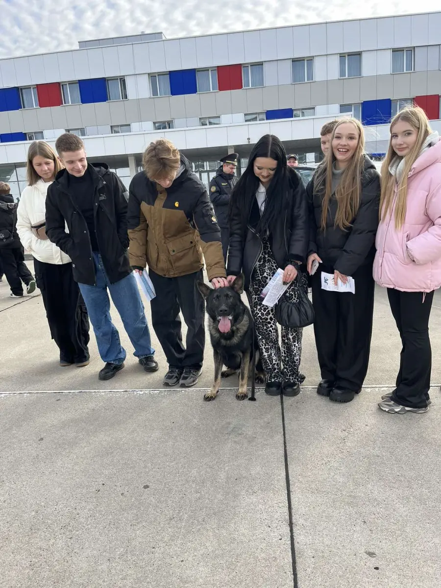 Представители департамента охраны продемонстрировали нам дрессировку собаки и даже разрешили погладить ее.