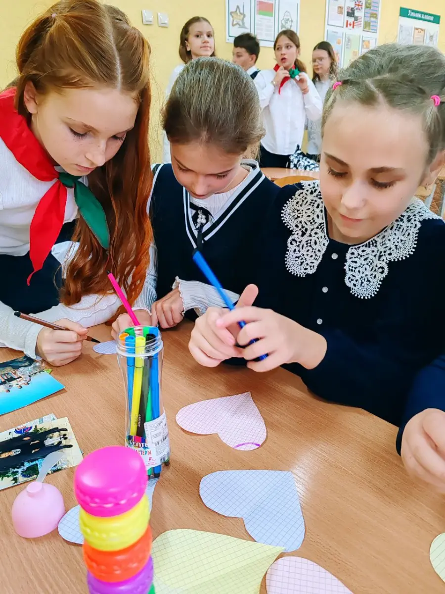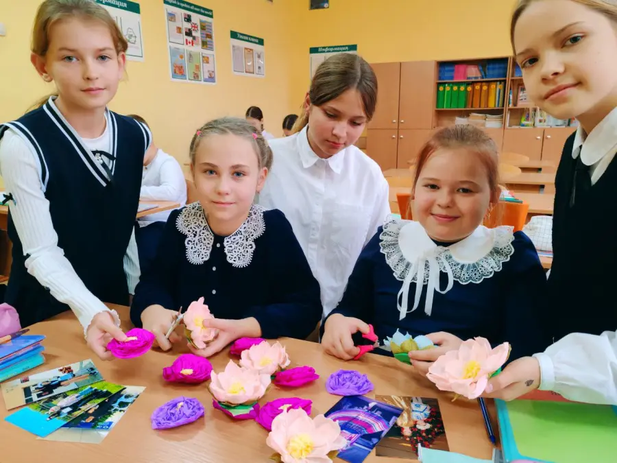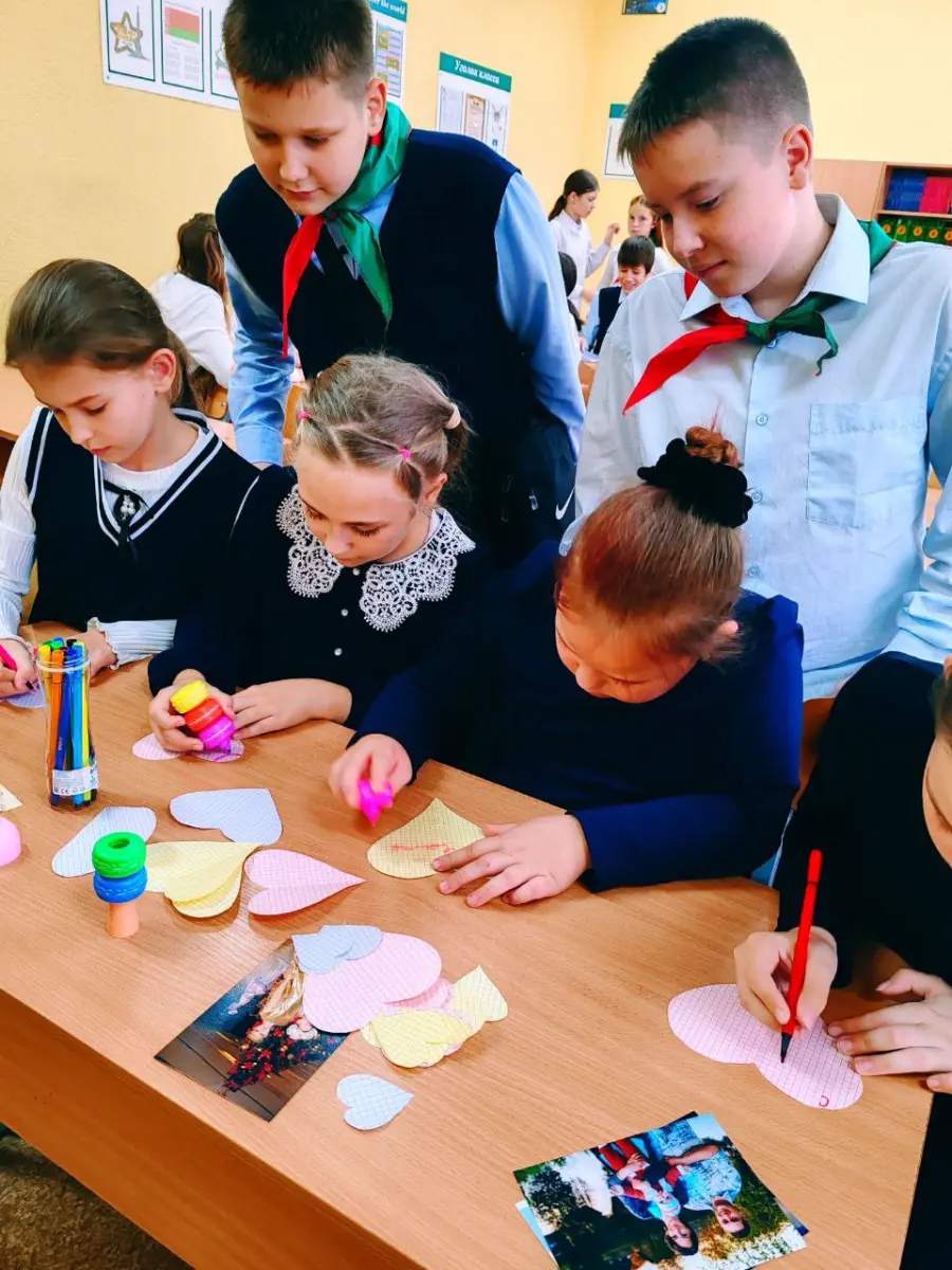 Пионеры научили четвероклассников материть цветы из бумаги, а октября подготовили фоторепортаж о своих мамах. В конце мероприятия ребята подготовили открытки-сердечки для своих любимых мам. Такая встреча оставила у ребят много позитивных эмоций и ярких впечатлений.