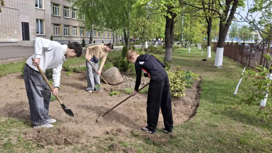 Уже стало традицией для учащихся нашей школы принимать участие в районном конкурсе по ландшафтному оформлению территорий учреждений образования "Квiтней, мая Барысаўшчына!".