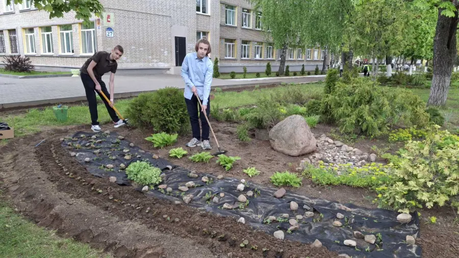В весенне-летний период учащиеся регулярно осуществляли полив, прополку и подкормки растений, очищали композицию от мусора и загрязнений.
