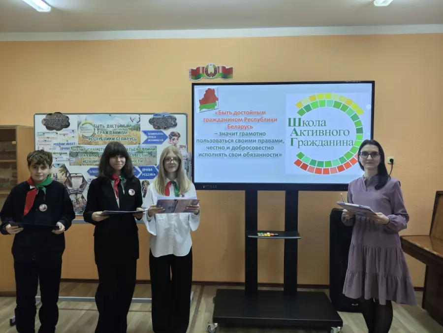 26 ноября 2025 года в рамках реализации республиканского информационно-образовательного проекта «Школа Активного Гражданина» для учащихся 8 классов был проведен воркшоп «Быть достойным гражданином Республики Беларусь – значит грамотно пользоваться своими правами, честно и добросовестно исполнять свои обязанности».
