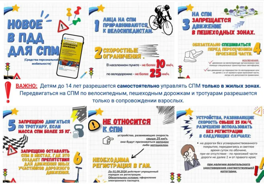 ГАИ напоминает о важных изменениях в правилах для средств персональной мобильности (СПМ) – электросамокатов, велосипедов и т.д