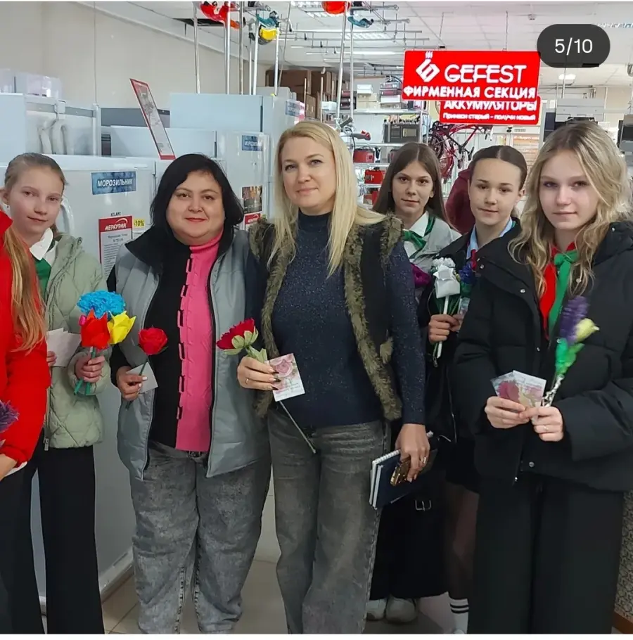 Ребята вручали мамам в микрорайоне школы заранее изготовленные своими руками объёмные, яркие цветы. Было так трогательно наблюдать за их улыбками, смущением и радостью! Спасибо всем, кто принимал наши поздравления и делился своими улыбками в ответ 😊. Эта акция — наш маленький, но такой важный способ сказать всем мамам СПАСИБО. За вашу любовь, терпение и за то, что вы всегда рядом.