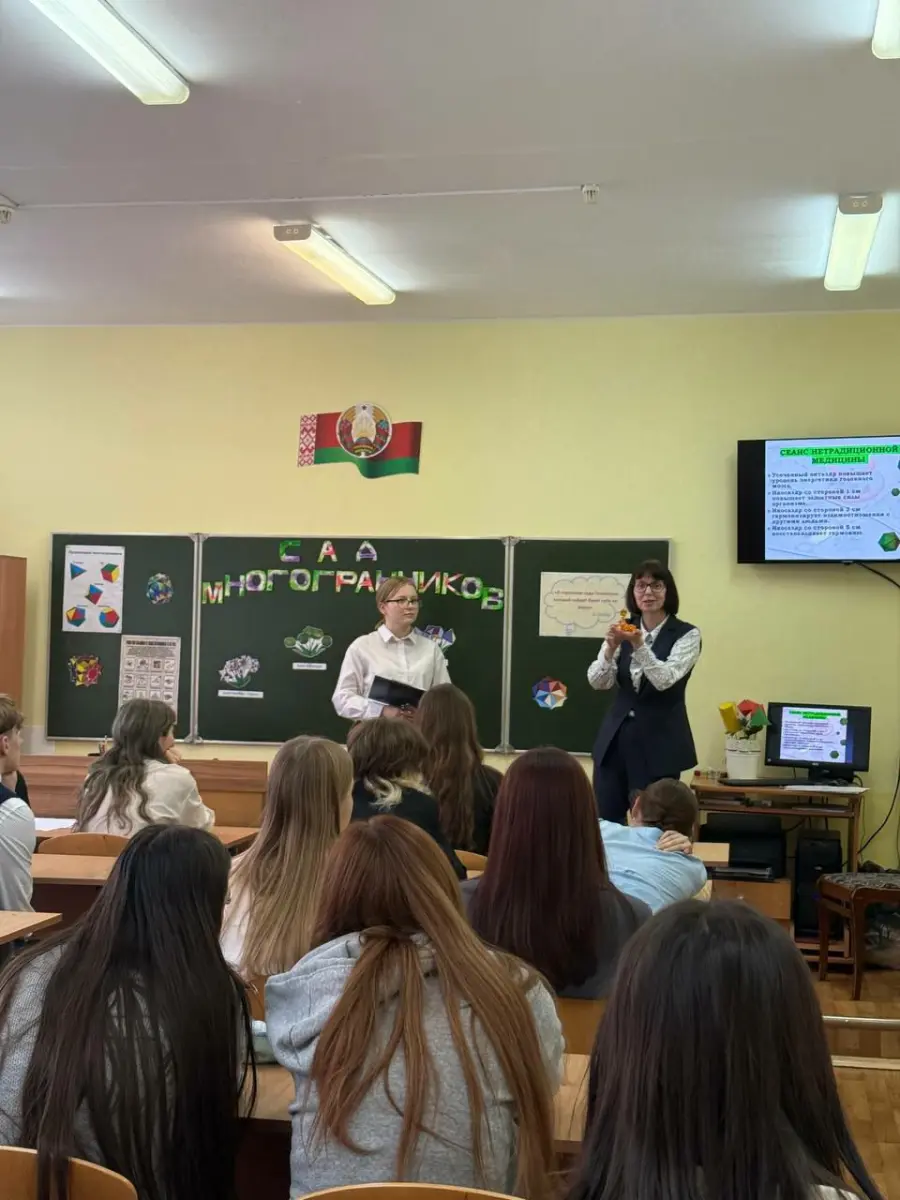 Мораль и основная мысль этого мероприятия такова: «Все вокруг— геометрия». Учащиеся узнали, что даже днк и вирусы — это многогранники. В конце всем достался сладкий сюрприз и прозвучала веселая песенка.