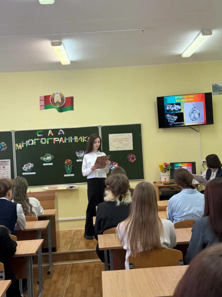 На данном мероприятии учащиеся узнали много интересных и познавательных фактов про многогранники, появление терминов «пирамида» и «призма». Также они вспомнили про классификацию многогранников. Были подготовлены презентации про многогранники в искусстве, в окружающем нас мире. Очень интересно было узнать, что все кристаллы - это многогранники. О красоте снежинок, великолепии кристаллов Сваровски, принадлежности драгоценных камней к знакам зодиака и о многом другом шла речь на нашей встрече.