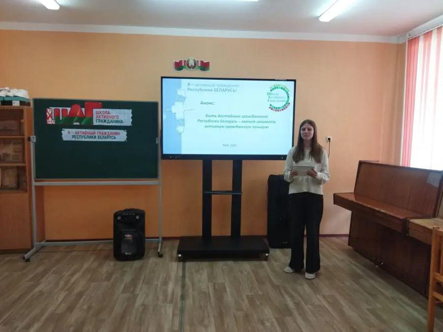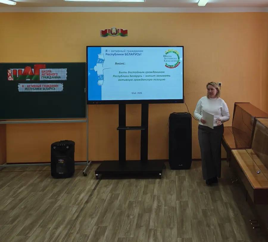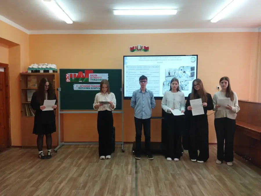 23 апреля для учащихся 9-х классов прошло занятие в рамках информационно-образовательного проекта " Школа Активного Гражданина". Тема: " Быть достойным гражданином Республики Беларусь- значит гордиться достижениями Беларуси".
