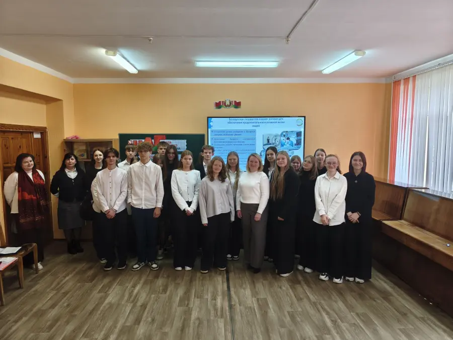 Во время беседы были рассмотрены вопросы: какими достижениями в экономике может гордиться страна? Почему Беларусь можно назвать страной с высоким уровнем развития науки? В чем особенности системы образования в Республике Беларусь? Чем обусловлены достижения Республики Беларусь на спортивном Олимпе? На мероприятие была приглашена врач клинической лабораторией диагностики ( заведующий) КДЛ поликлиники 4 УЗ " Борисовская ЦРБ" Мицкевич Юлия Эдуардовна, которая рассказала о том, что подтверждает высокий уровень системы здравоохранения Республики Беларусь и ответила на интересующие вопросы учащихся. В ходе разговора все учащиеся 9-х классов пришли к единому выводу, что быть достойным гражданином Республики Беларусь - значит гордиться достижениями Беларуси".